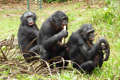 Horgan também usa um argumento ainda mais poderoso contra a ideia de que este estudo significa alguma coisa em relação ao comportamento humano: Entre os bonobos (Pan paniscus, também conhecidos como chimpanzés pigmeus), uma espécie que é menos comum que a dos Pan trogodytes (comummente conhecidos apenas como chimpanzés) do outro lado do Rio Congo ao que o estudo se centra, qualquer tipo de violência é rara e as mortes intercomunitárias são totalmente desconhecidas. (Wilson et al. examinaram quatro comunidades de bonobos e só encontraram uma única “suspeita” de morte.) De facto, o comportamento e as estruturas sociais dos bonobos são muito diferentes das dos chimpanzés em muitas formas. Por exemplo, ao contrário dos chimpanzés, os machos não são dominantes entre os bonobos. Dado que os bonobos são geneticamente tão próximos dos seres humanos modernos como os chimpanzés, isto é um forte contra-argumento à alegação de que os antepassados comuns dos seres humanos e dos chimpanzés passaram os genes de um comportamento violento.