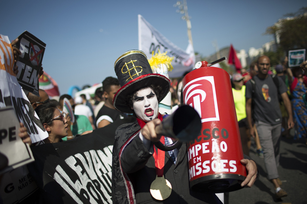 Da edição n.º 451, de 8 de agosto de 2016, do jornal Revolution/Revolución, voz do Partido Comunista Revolucionário, EUA (revcom.us/a/451/olympic-flame-extinguished-as-protests-rock-brazil-en.html).
