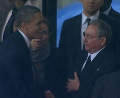 Em 1959, Fidel, o irmão mais velho de Raul Castro, Che Guevara e outros lideraram os cubanos no derrube de um regime odiado e apoiado pelos EUA, que assassinou cerca de 20 mil pessoas nos seus últimos anos e exemplificou o desdém do império pelas vidas dos povos da América Latina e dos oprimidos de todo o mundo. Quando pouco depois Fidel foi falar à ONU em Nova Iorque, milhares de afro-americanos e outras pessoas afluíram ao hotel no Harlem onde ele escolheu ficar em vez das acomodações de luxo de outros chefes de estado. O aperto de mão de hoje foi um momento amargo para os cubanos e para as pessoas a nível global, incluindo nos EUA, onde Obama e a máquina do estado em geral gostariam que este gesto atenuasse algum do descrédito ganho pelo homem que está agora a presidir a um “genocídio lento”, como já foi chamado, dos afro-americanos, e a guerras de agressão e tentativas de reactivar a hegemonia norte-americana em grande parte do mundo.
