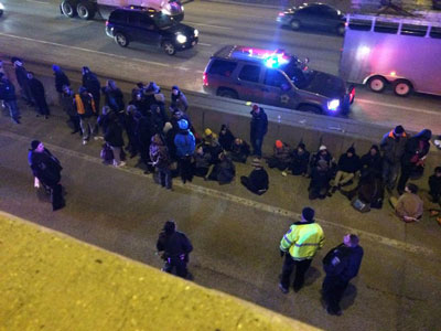19 de Dezembro de 2014 – Os manifestantes fecharam a auto-estrada I-43 em Milwaukee em ambas as direcções durante a hora de ponta para protestarem contra o assassinato policial de Dontre Hamilton.